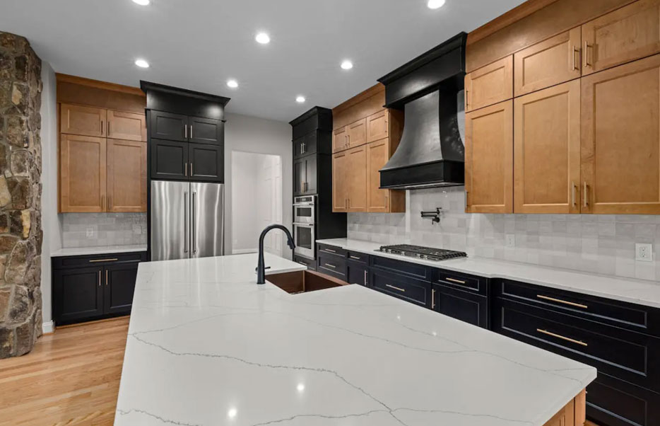 Contrast countertops and cabinetry to highlight texture and depth.